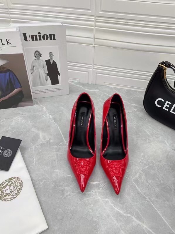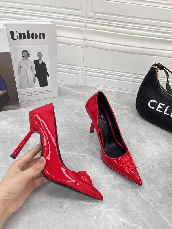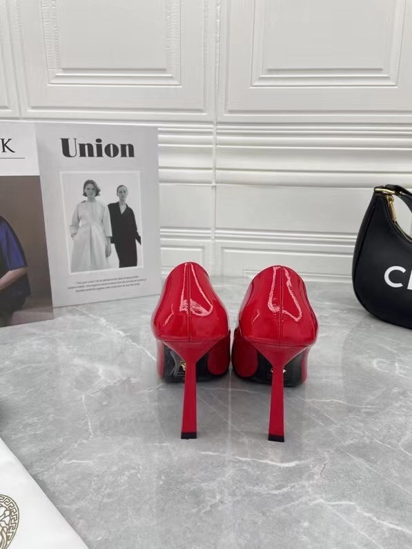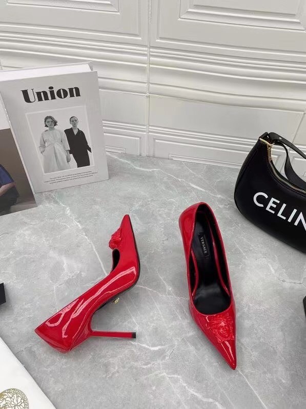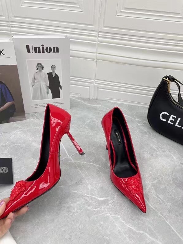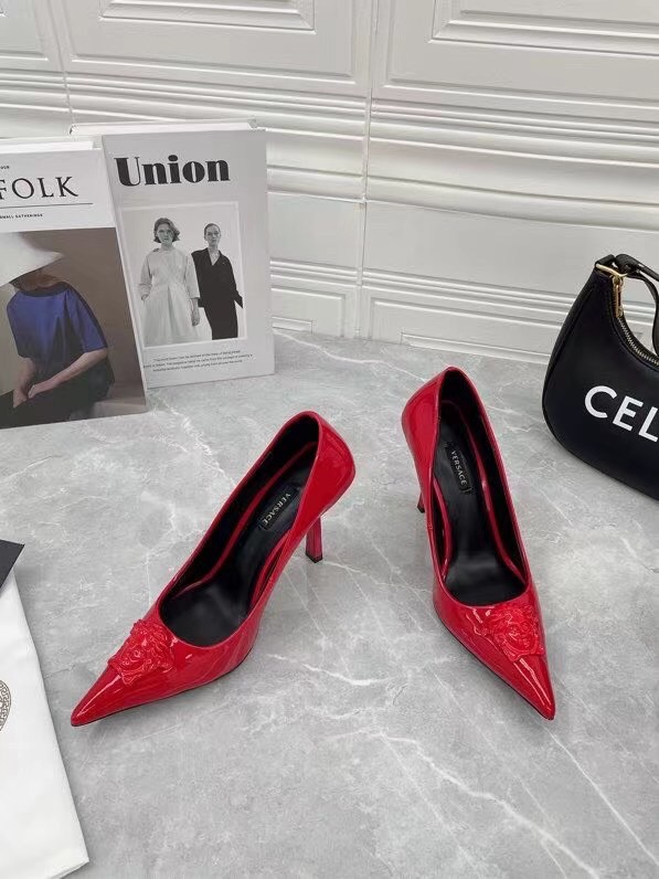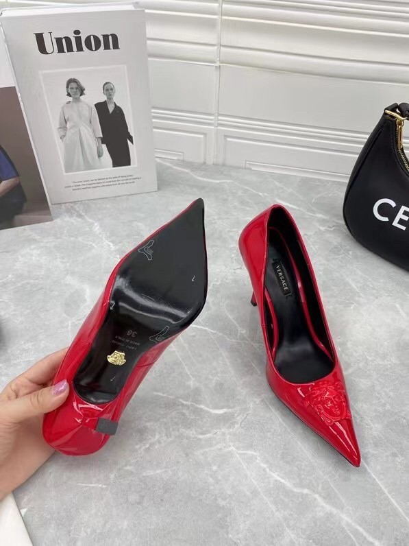 Continuing to celebrate one of their most famed motifs, Versace brings the iconic Medusa Head into their footwear offering. Crafted from glossy patent leather, these pumps are accented with the label’s instantly recognisable Medusa Head appliqué to the front.